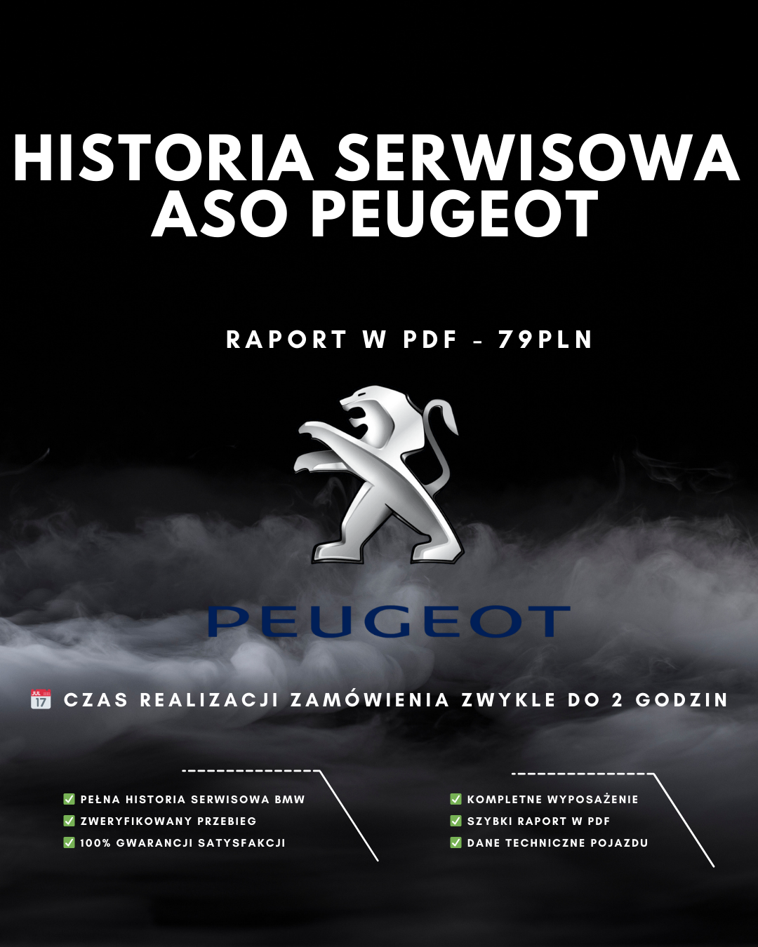 - ???? Bezpieczeństwo – gwarantujemy zwrot kosztów, jeśli historia serwisowa Peugeot nie będzie dostępna.