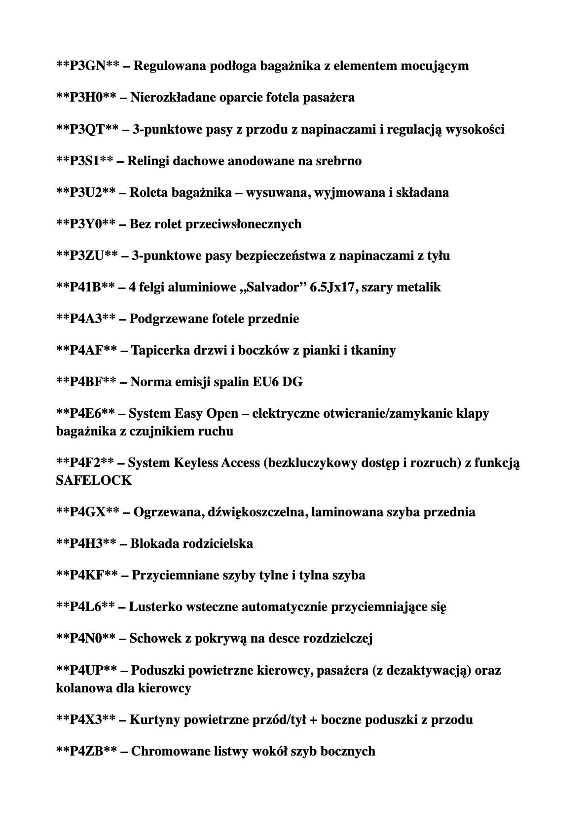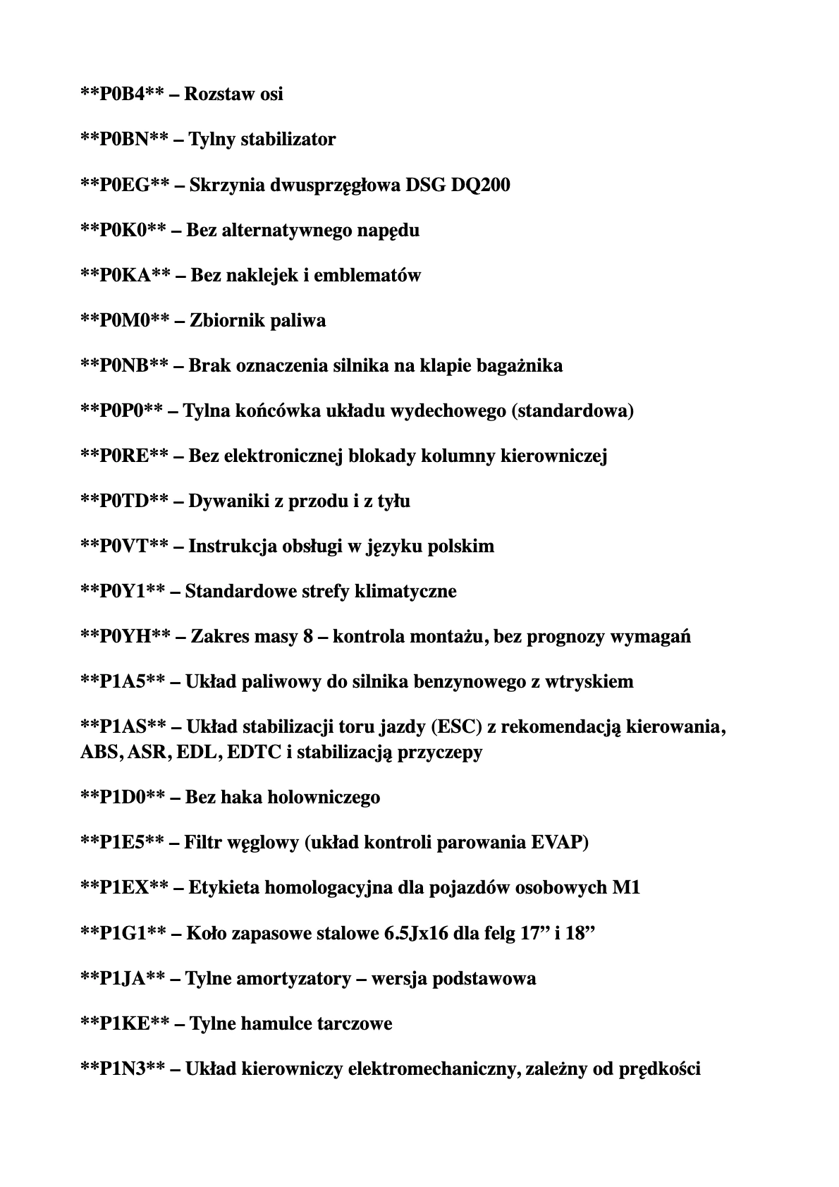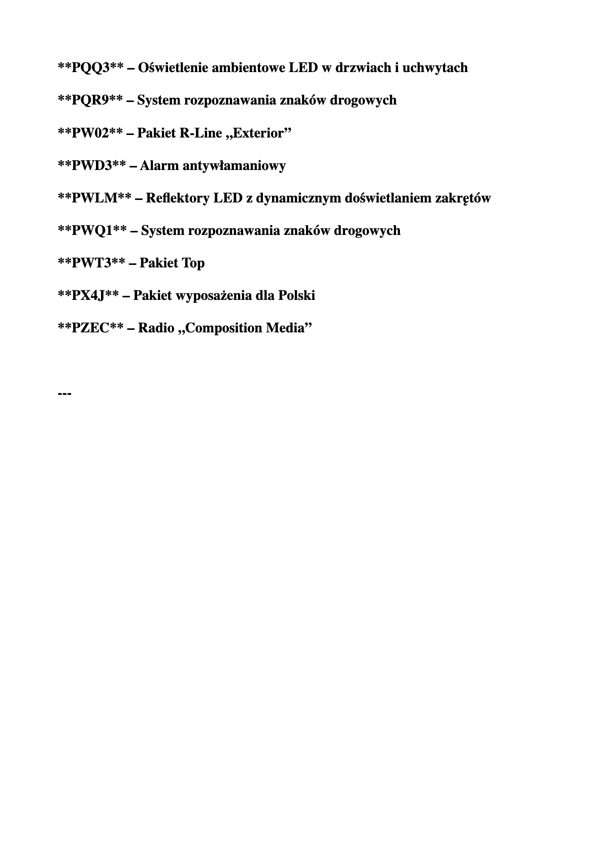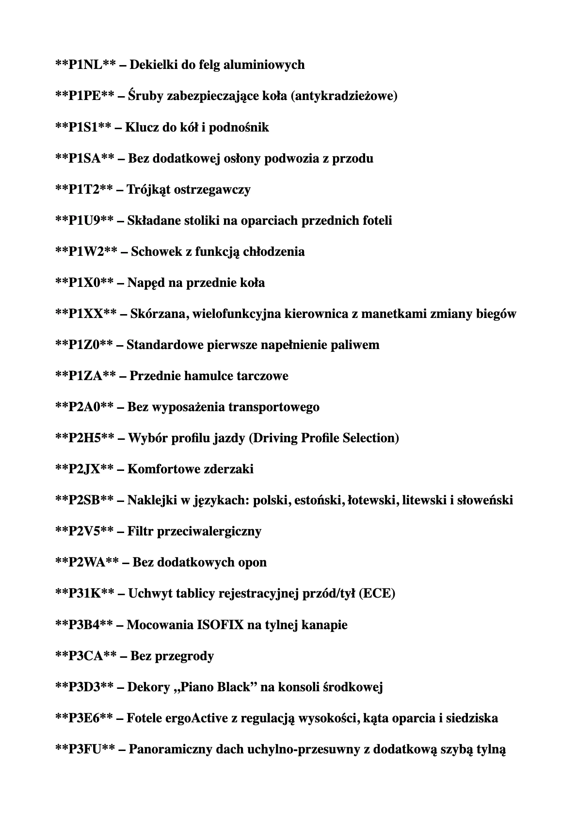 - Szczegółową listę wyposażenia (kody PR) – po polsku.